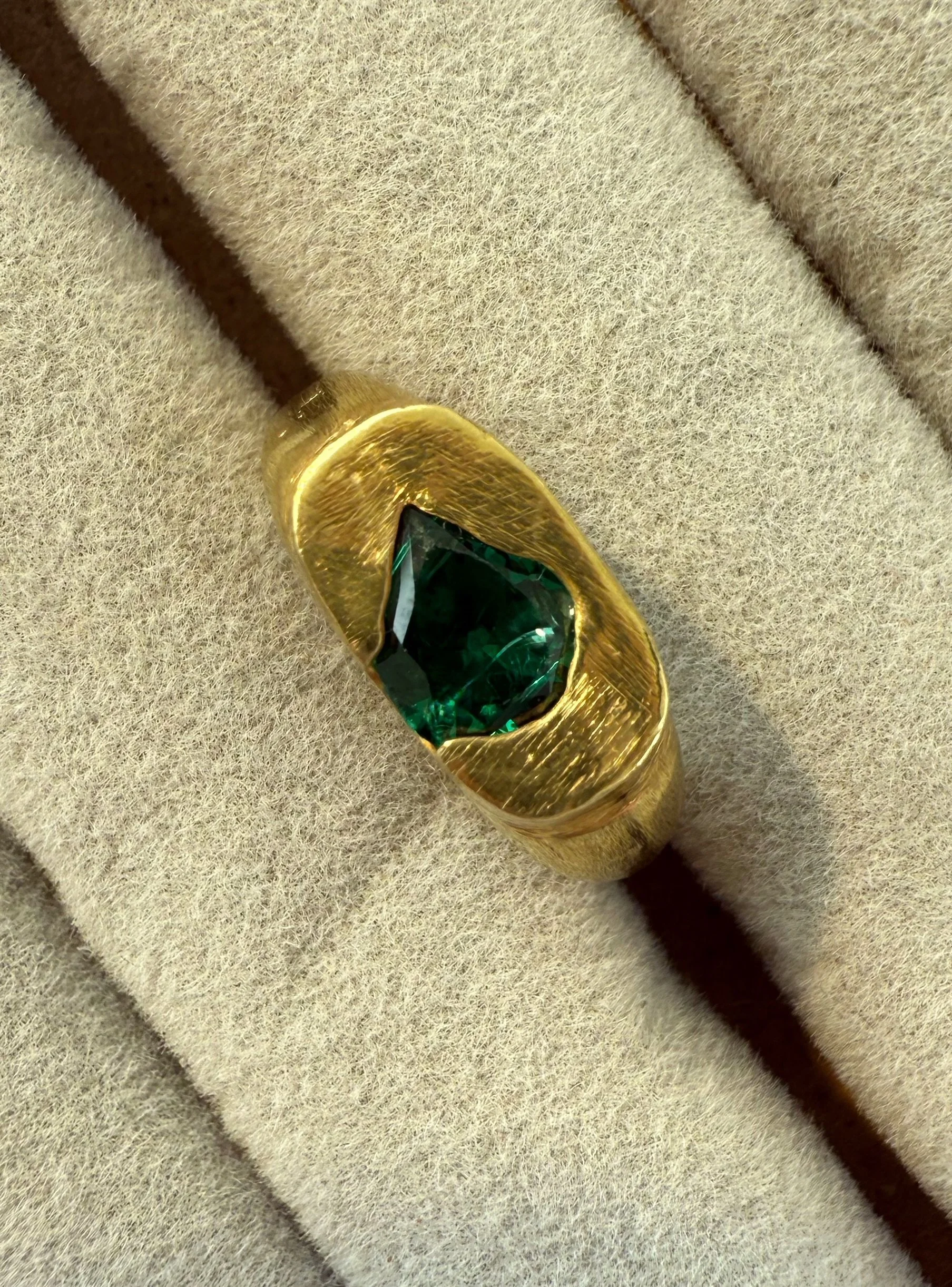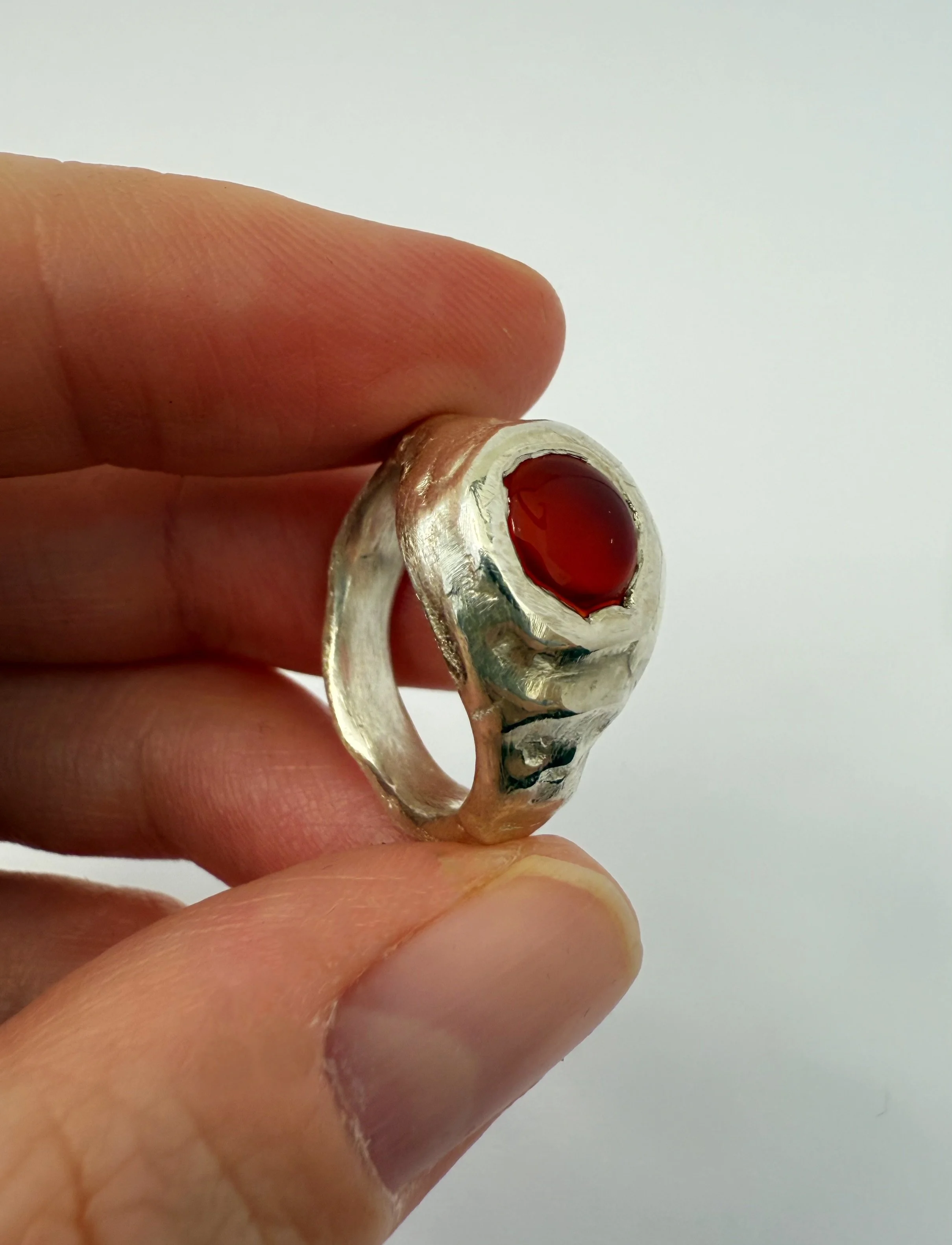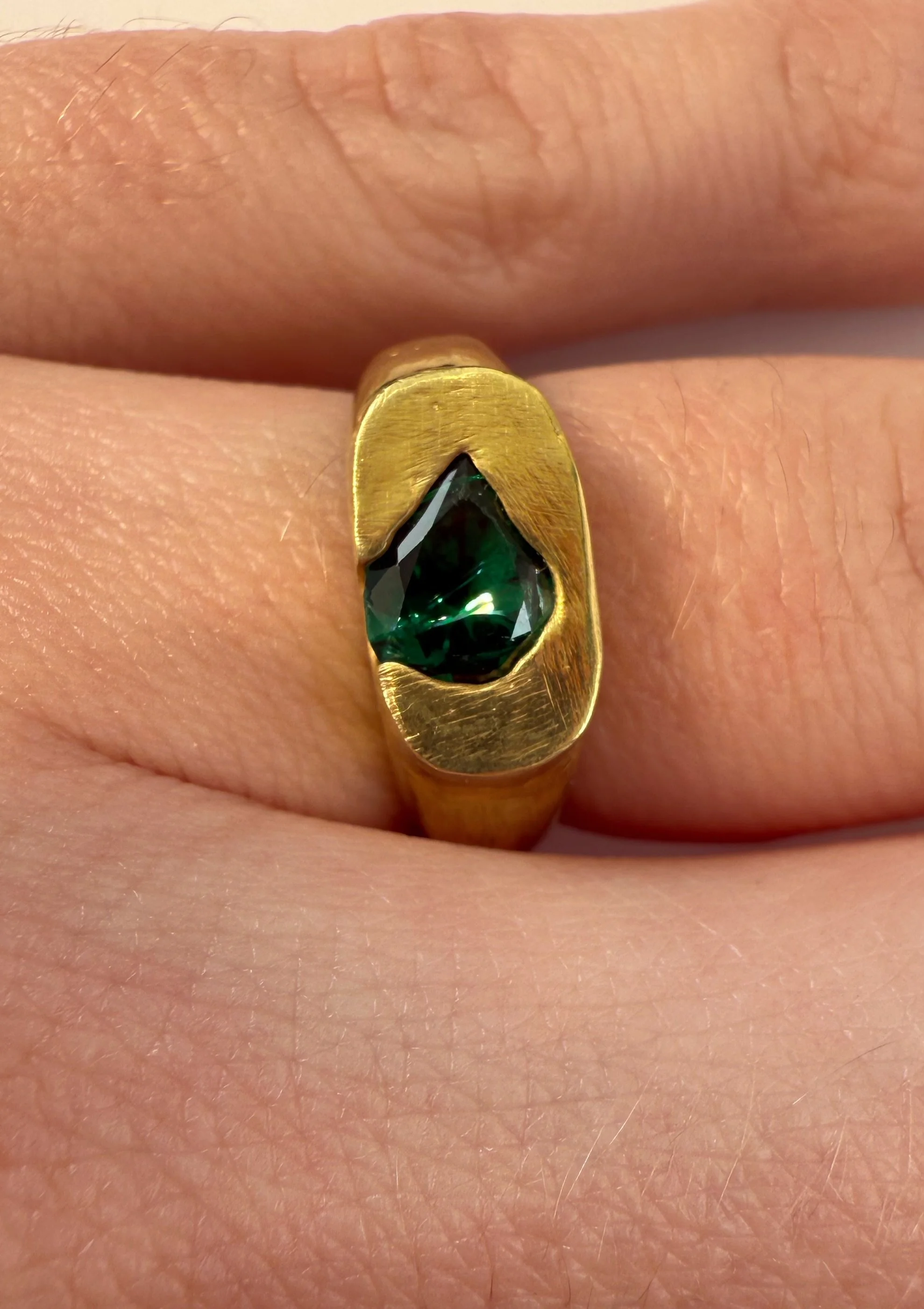 It comes in size 53 and is handcrafted, so slight differences in texture and stone placement make each ring unique.